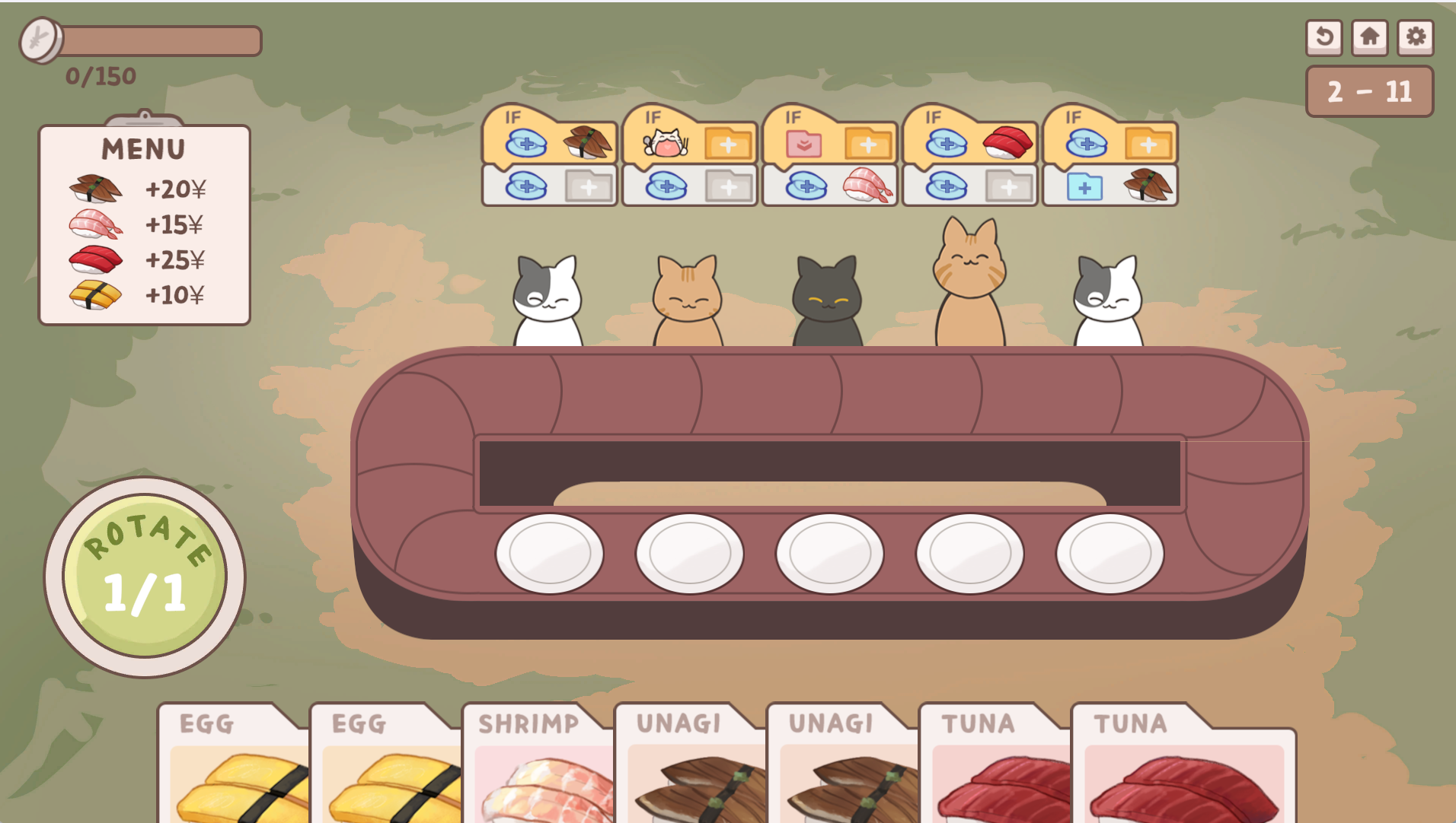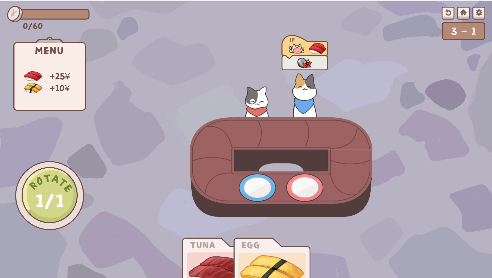 《Loop! Loop! Sushi》는 초밥을 조건과 결과에 맞게 배치해 연쇄 효과를 만들어내고, 목표 판매량을 달성하며 회전 초밥 가게를 운영해 나가는 독창적인 퍼즐 게임입니다.